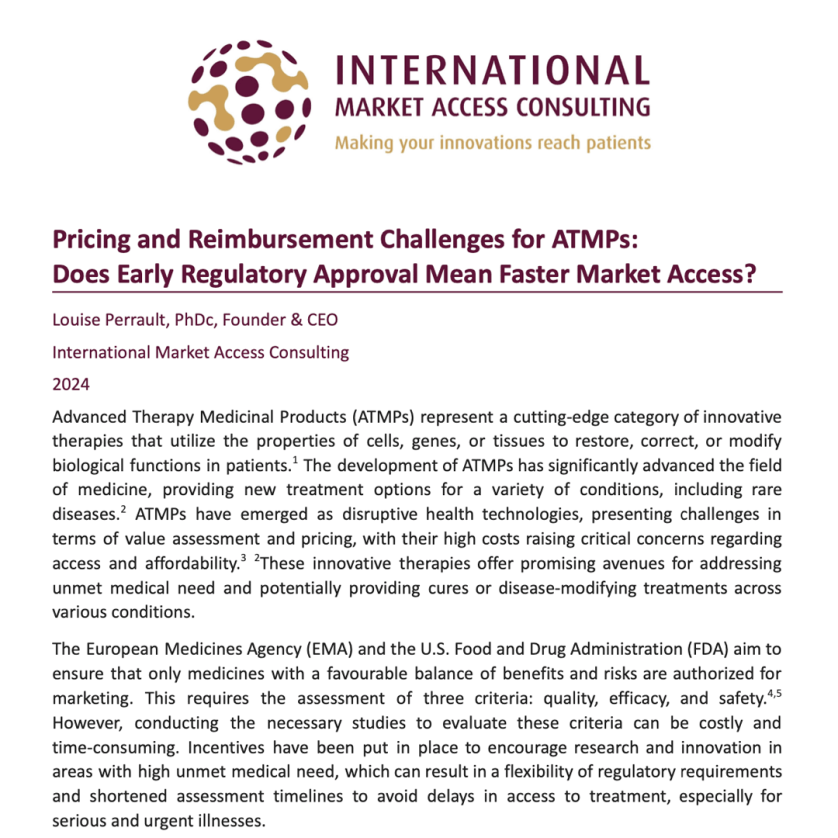 Pricing and Reimbursement Challenges for ATMPs: Does Early Regulatory Approval Mean Faster Market Access?